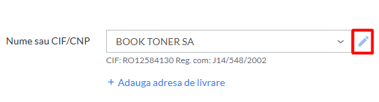 - din pagina de emiterea a documentelor, dupa ce ai selectat un client si apesi pe butonul marcat de un „creion” afisat in dreapta campului Nume sau CIF/CNP.